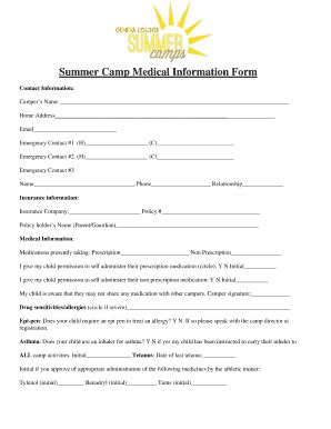 Summer Camp Medical Forms. Camper healthcare recommendations by licensed medical personnel form 2;. A summer camp medical form is used to collect important health data for children attending a summer camp.